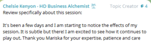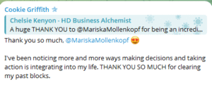 Zes vrouwelijke ondernemers uit de groep kozen voor een 1-op-1 sessie met mij en mijn biotensor. Iedere sessie was live, diepgaand en persoonlijk. Daarna kreeg elke vrouw haar eigen video met de inzichten en vervolgstappen. Dit is wat ze teruggaven na hun sessie: